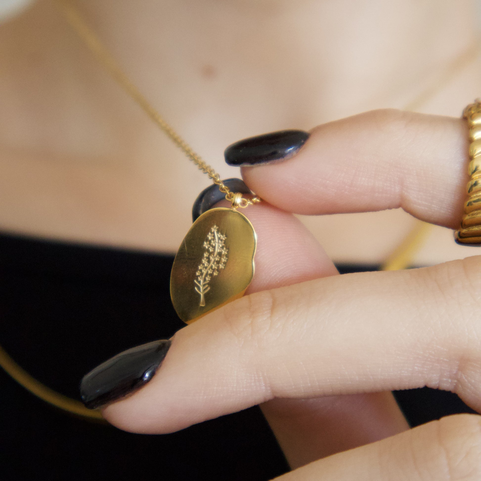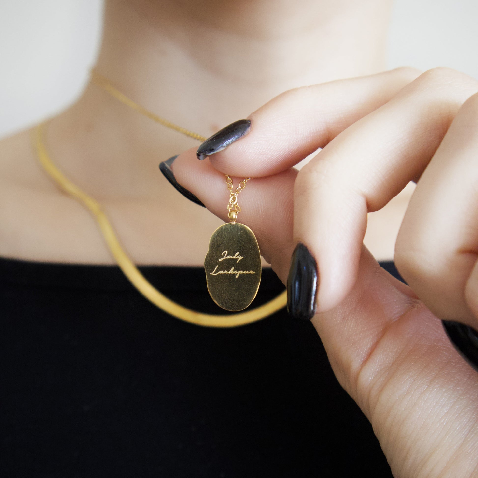 A meaningful everyday piece. This 18k gold-plated necklace features a delicately engraved birth flower to represent your birth month — understated, personal, and perfect for gifting.