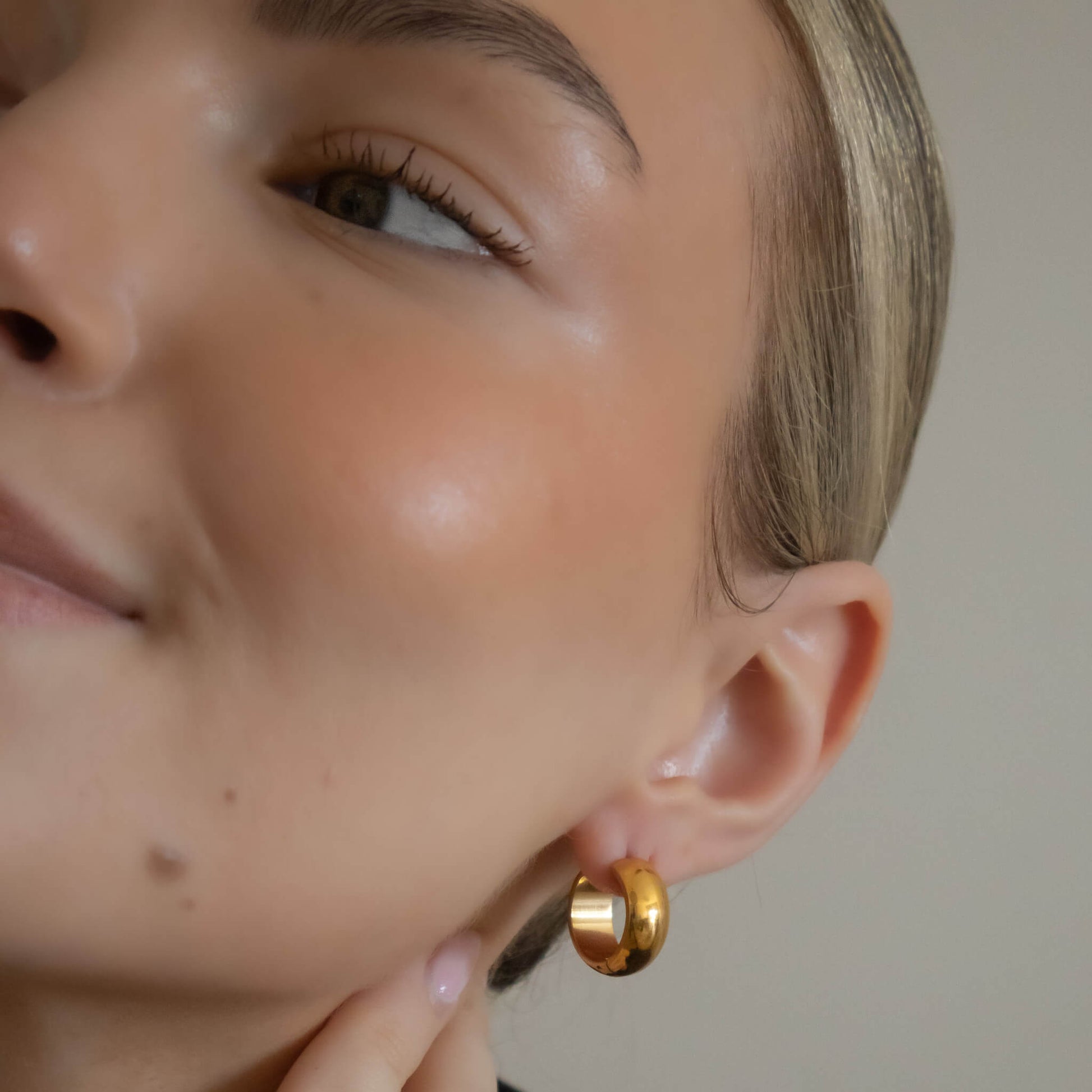 Discover the timeless elegance of our 18k Gold Plated Chunky Huggie Earrings. Expertly crafted with durability in mind, these waterproof earrings blend classic style with contemporary design. Perfect for any occasion, they offer a sophisticated touch