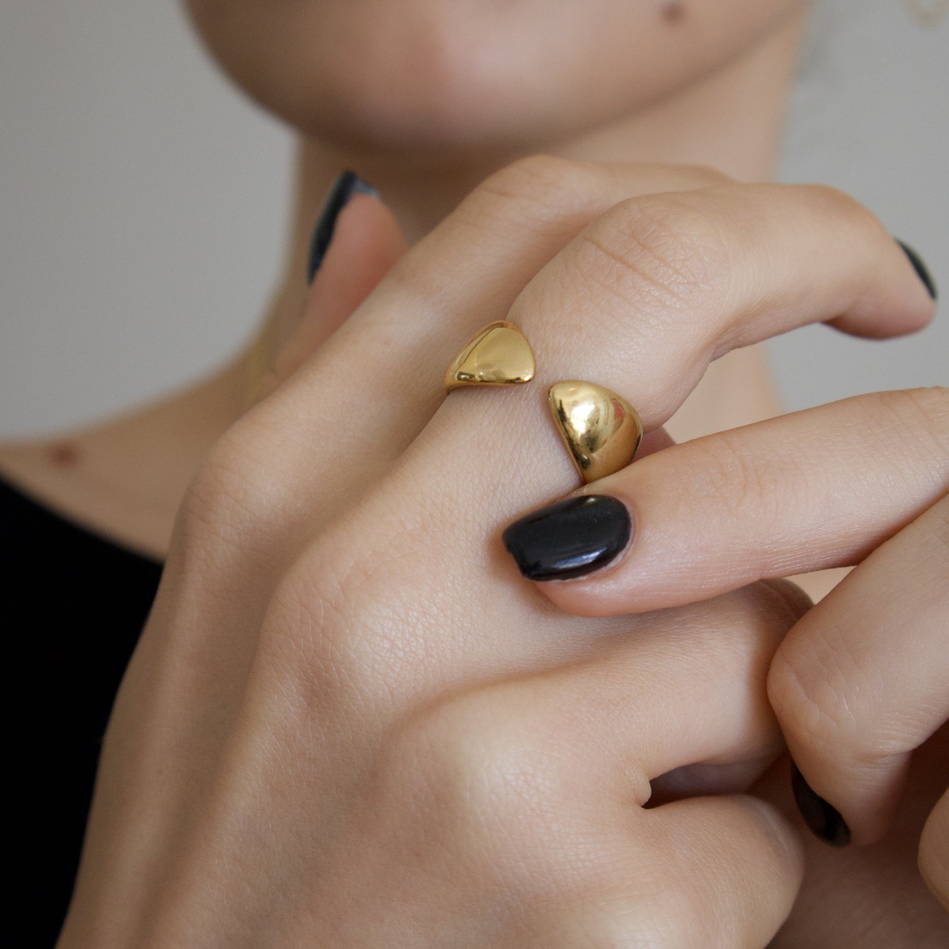 A ring you’ll reach for every day. Finished in radiant 18k gold and curved for a flattering, ergonomic fit, this lightweight piece balances elegance and comfort in one effortless design.