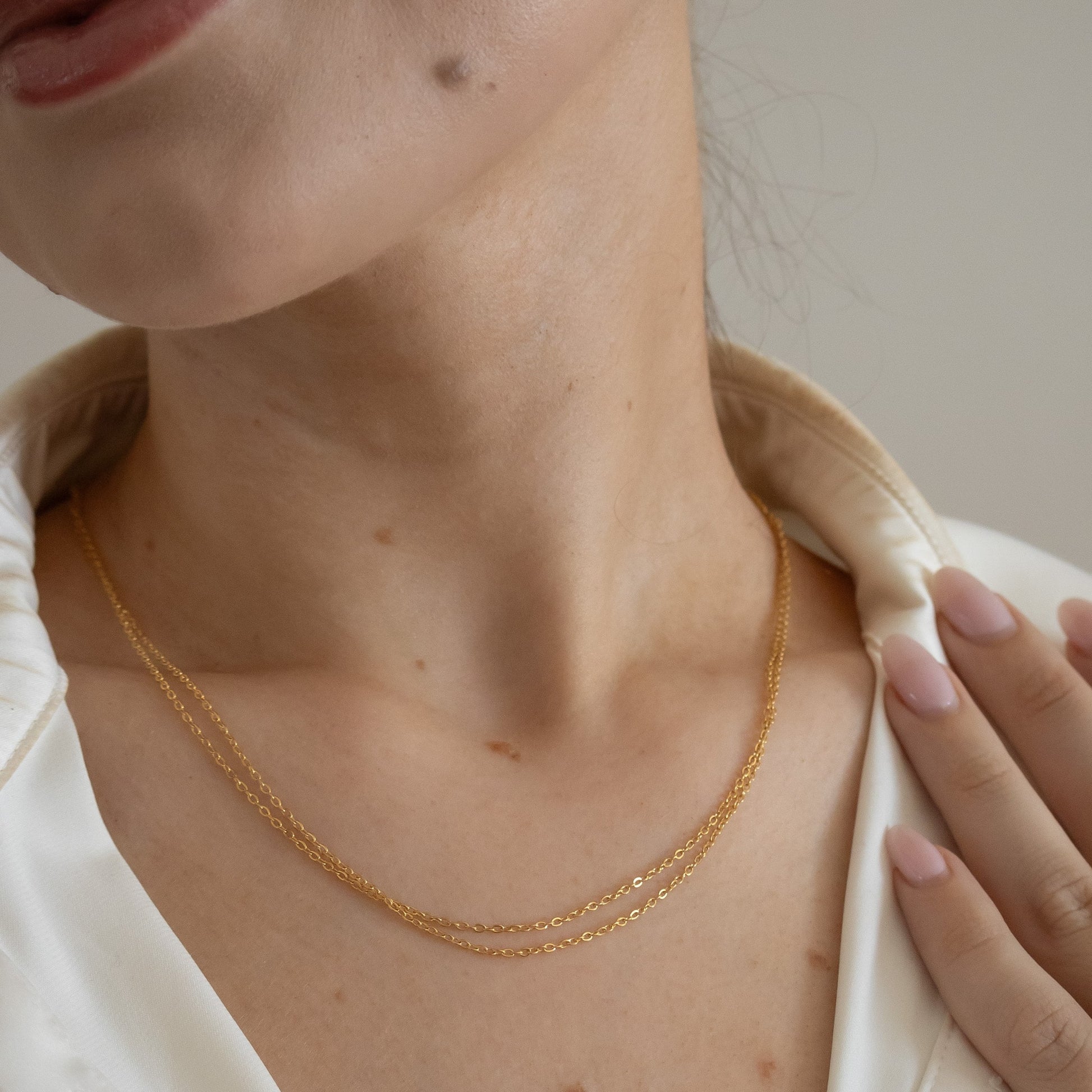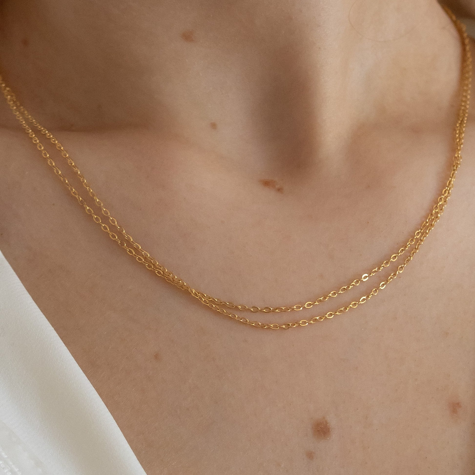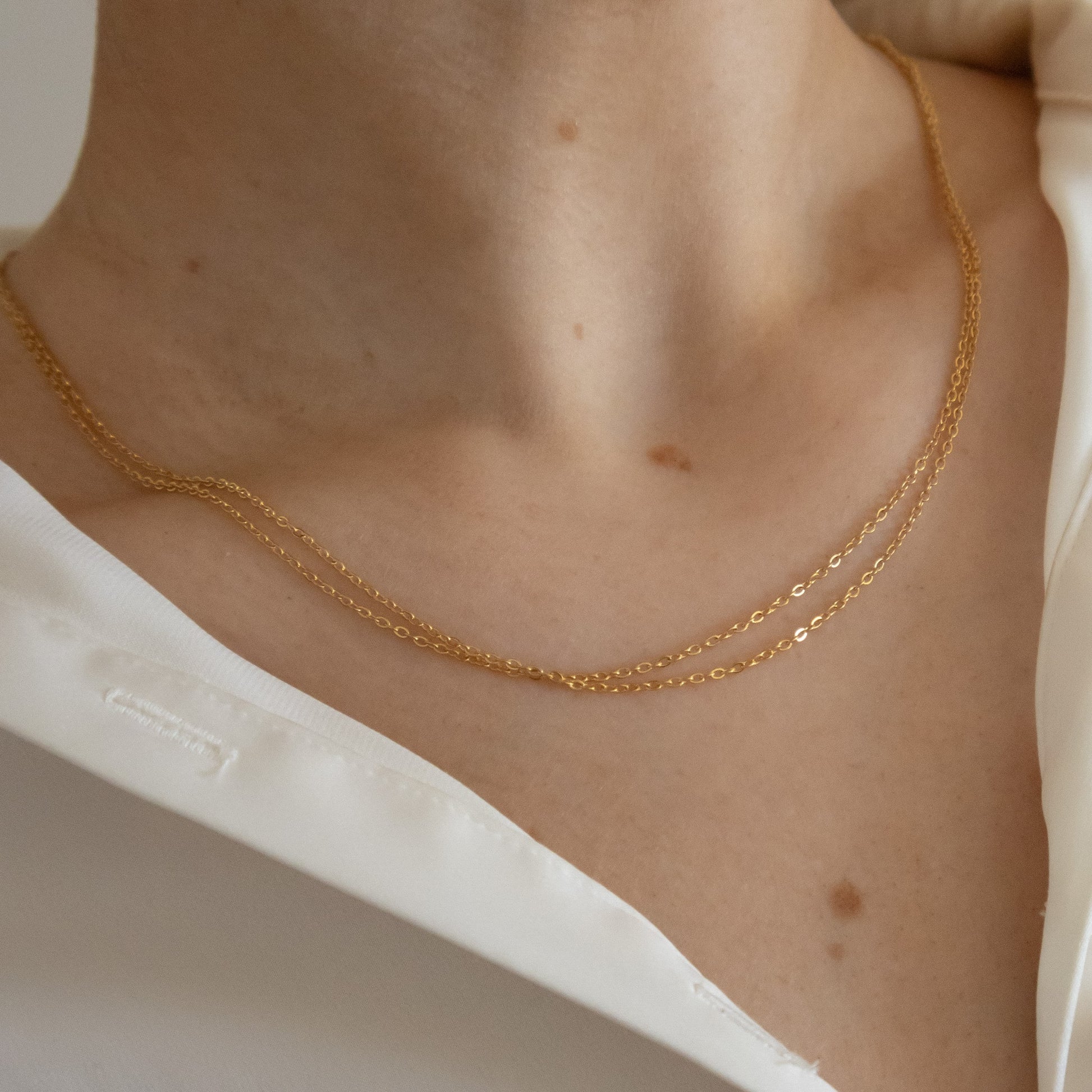 18k Gold plated stainless steel double fine chain necklace that combines durability with elegance.