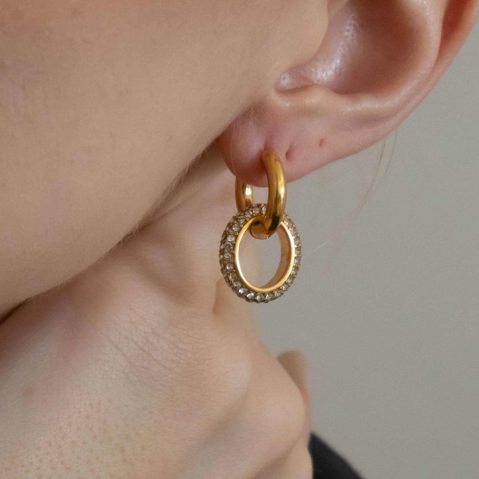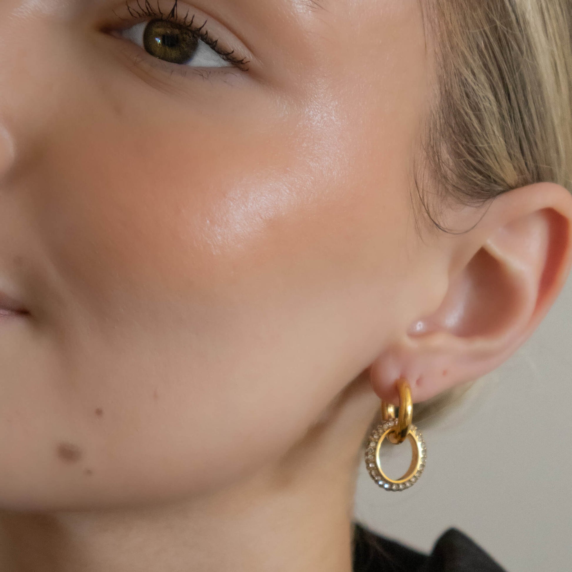 18k Gold Plated Double Huggie Earrings with Cubic Zirconias
