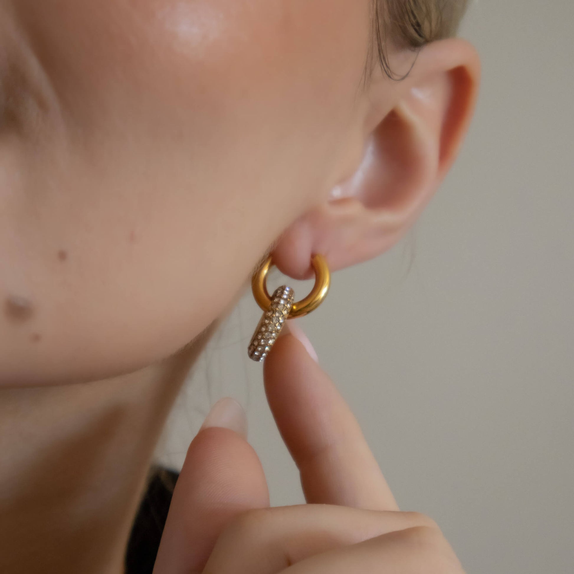 Introducing our 18k Gold Plated Double Huggie Earrings, adorned with sparkling cubic zirconias for a touch of elegance. Crafted from durable stainless steel and designed to be waterproof, these earrings are perfect for every occasion, offering a blend of luxury and practicality. The clear stones add a sophisticated sparkle, making them a versatile addition to any jewelry collection.