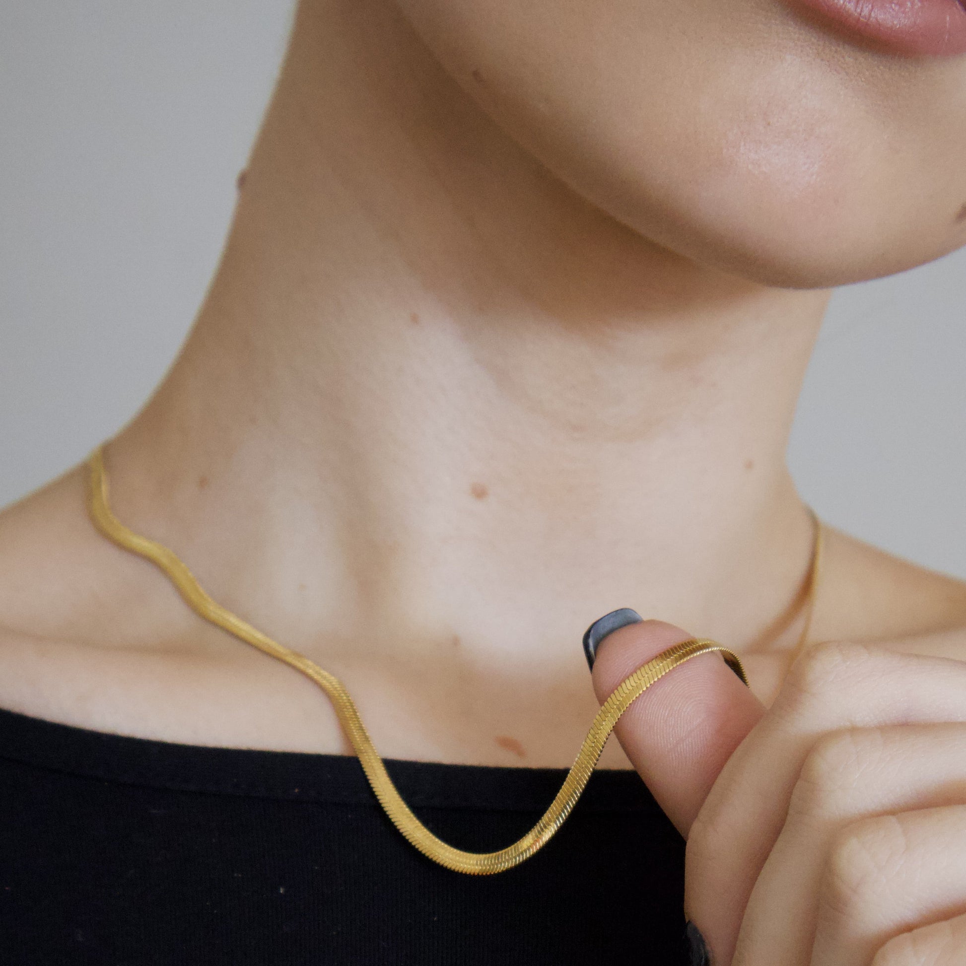 18k Gold plated stainless steel snake chain necklace that combines durability with elegance.