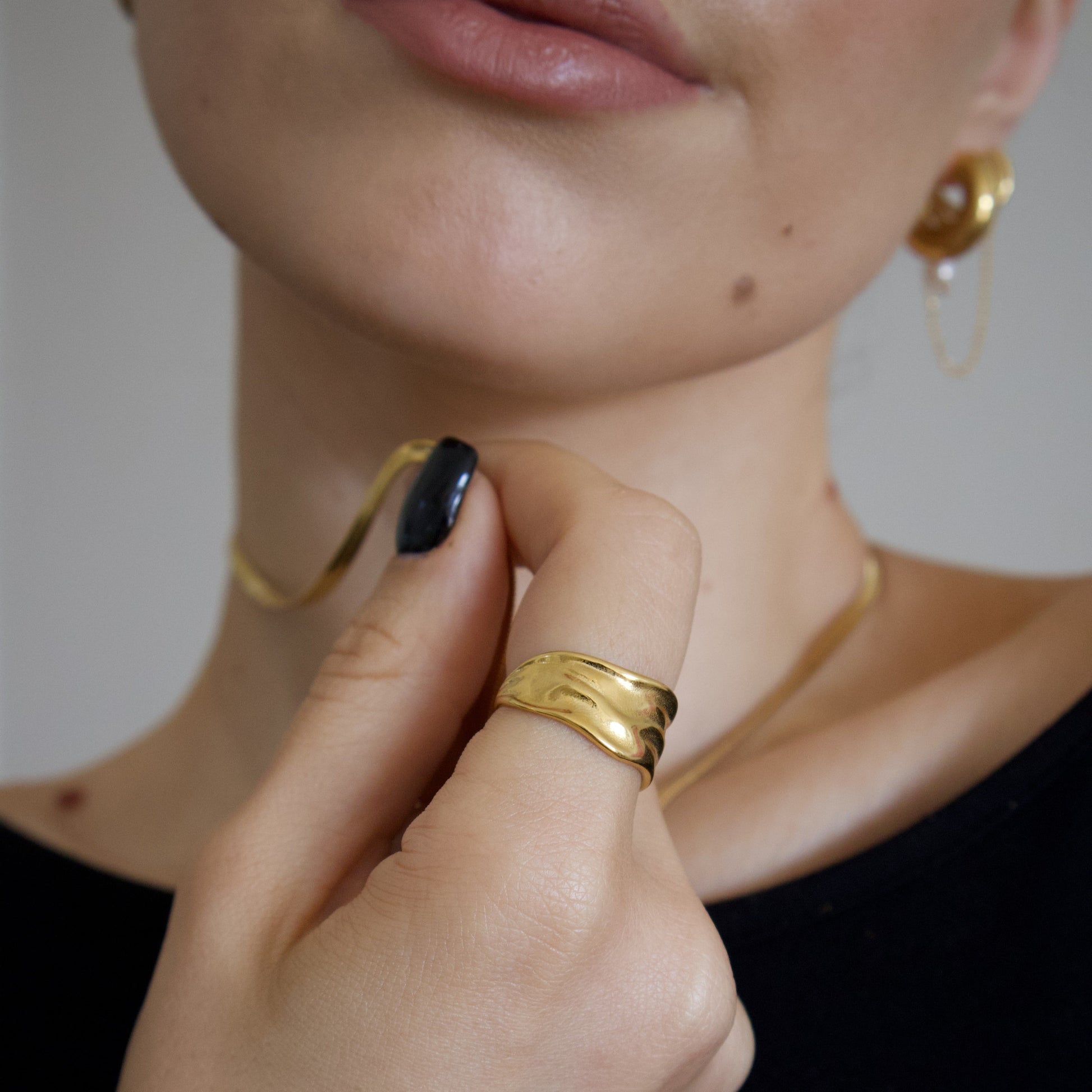 Elevate your style with the bold sophistication of our 18k Gold Plated Wide Band Textured Ring. Expertly crafted from stainless steel and adorned with a distinctive texture, this waterproof ring is a testament to durable elegance. Ideal for any occasion, it promises to be a standout addition to your collection, effortlessly blending luxury with practicality