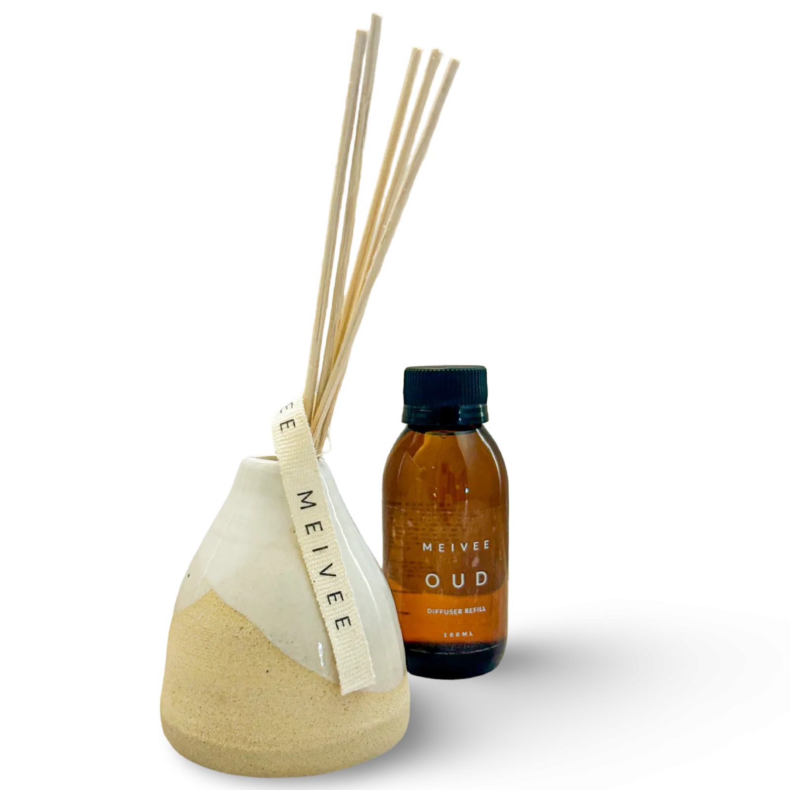 Introducing our exquisite Artisan Handcrafted Ceramic Reed Diffuser Vessel with a luxurious Oud Fragrance – a masterpiece of craftsmanship and aromatherapy in one.