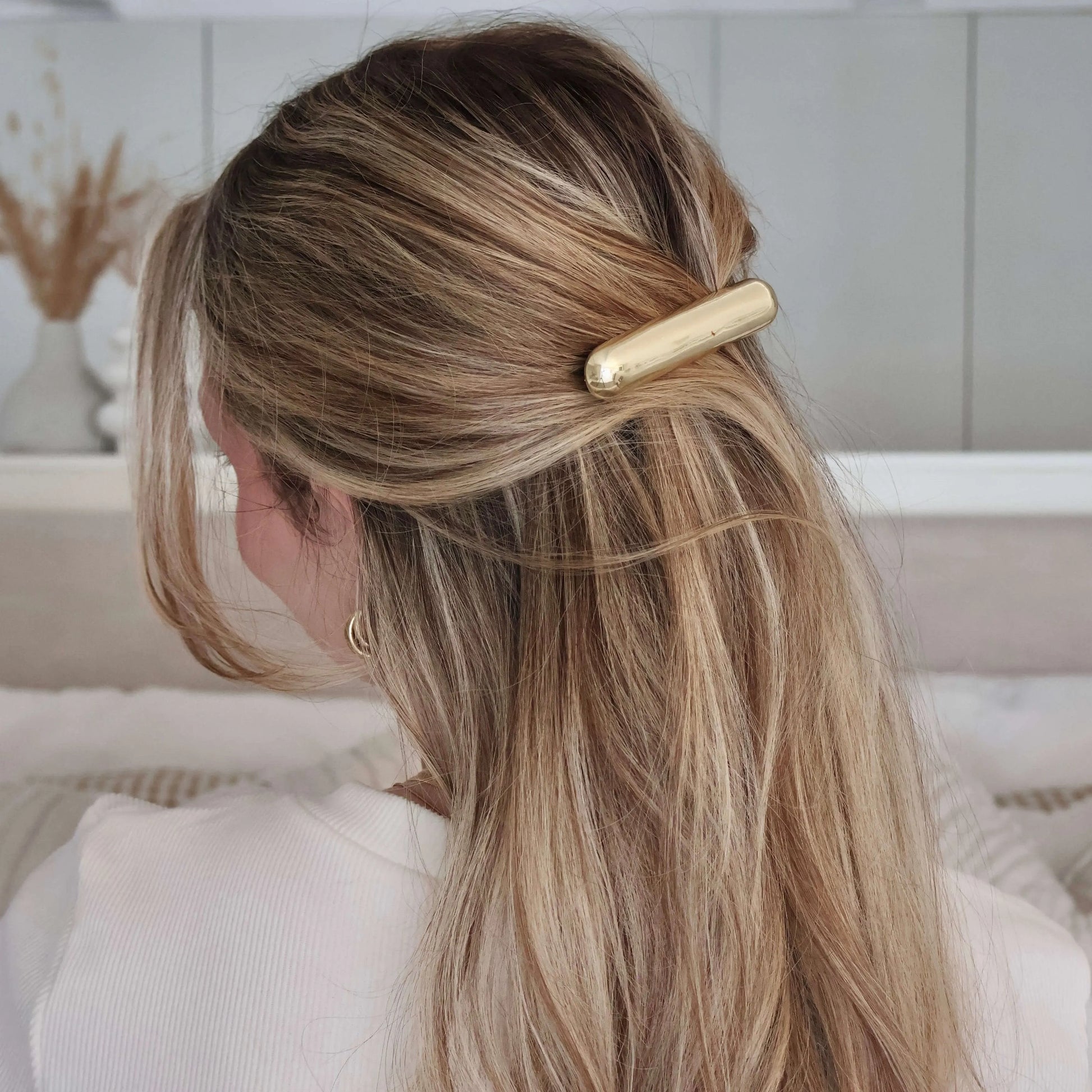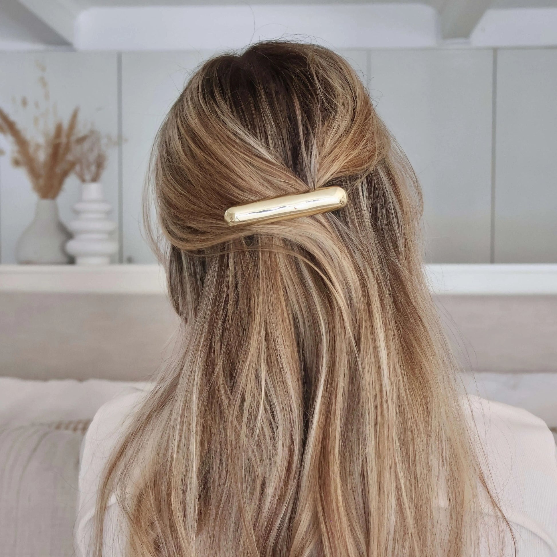 Elevate your hair game with our Effortless Gold Bar Hair Clip.