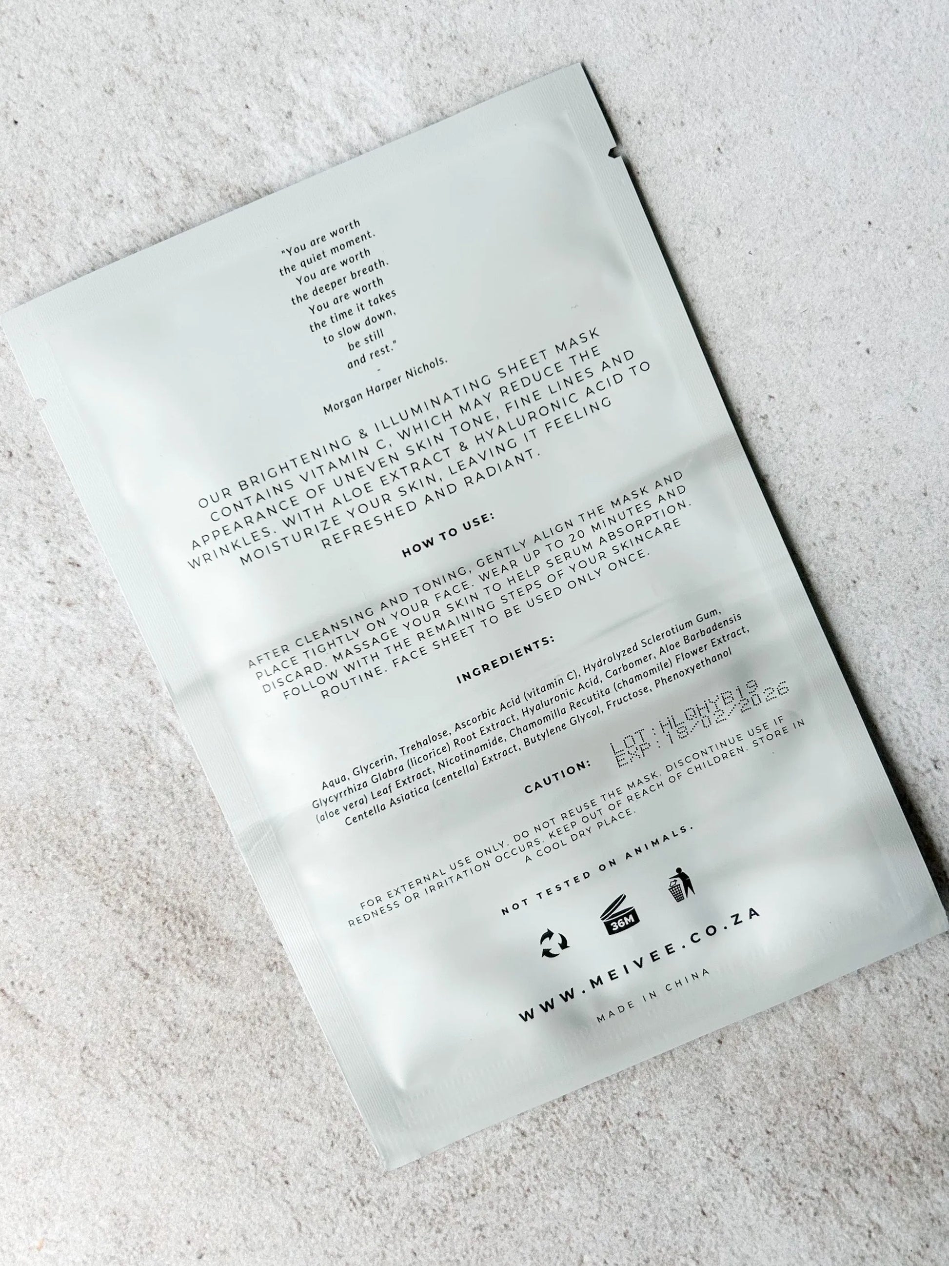 Introducing our illuminating Vitamin C sheet mask - the perfect addition to your daily self-care routine!