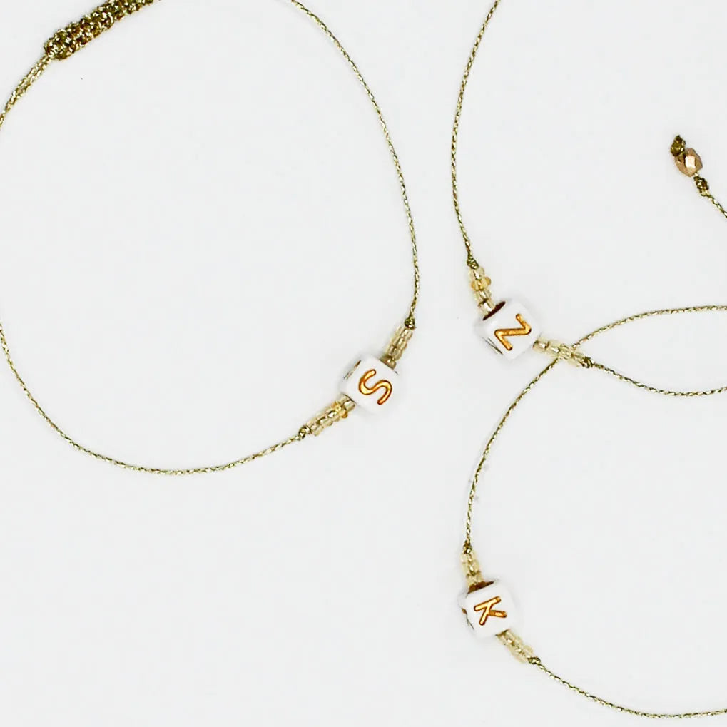 Delicate Monogram Bracelet with Adjustable Gold Cord - Perfect Gift