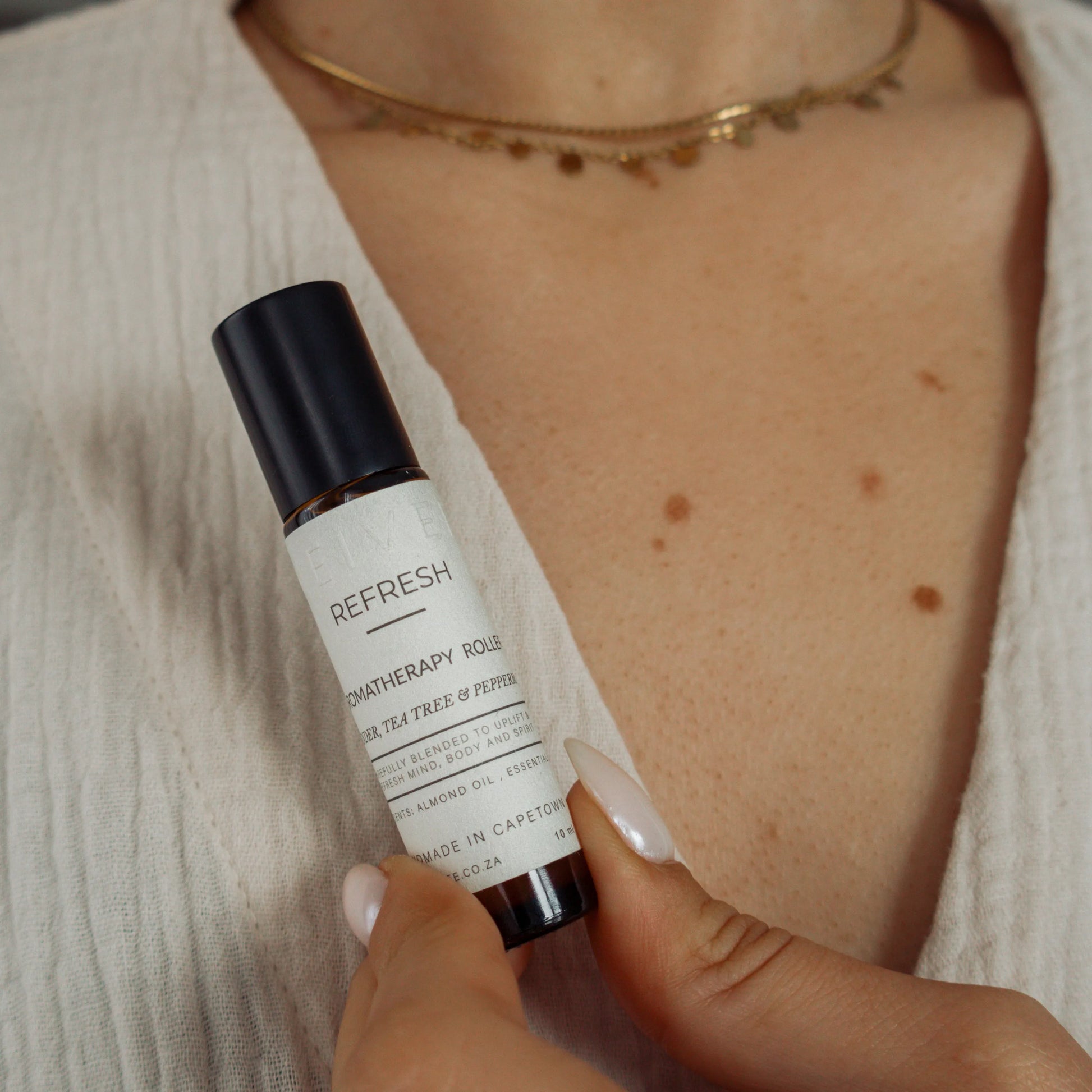 Introducing our handcrafted "Refresh" Aromatherapy Roller, expertly blended in the heart of Cape Town.